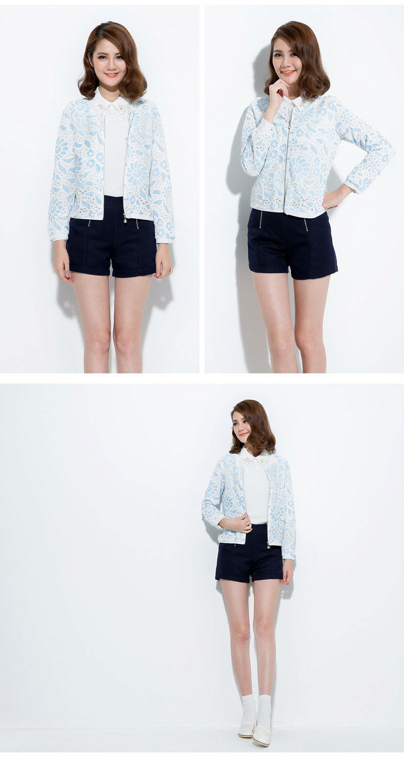 鏤空感開(kāi)衫外套,搭配深色短褲,休閑的代表,輕松穿出活力的早秋感。