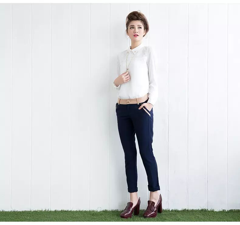 純白襯衫,搭配任何顏色都無(wú)可挑剔,搭配藏藍更是精致優(yōu)雅。