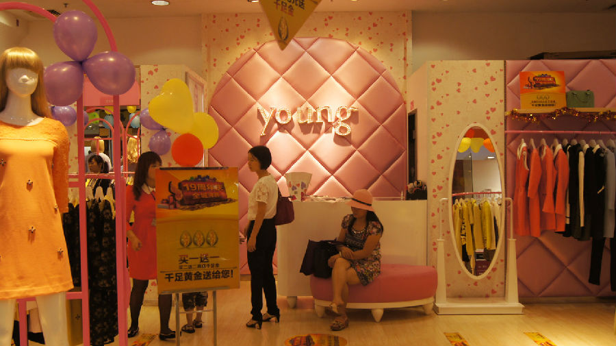 優(yōu)美世界女裝專(zhuān)賣(mài)店服裝陳設 順昌百貨young/優(yōu)美世界女裝買(mǎi)滿(mǎn)送千足金