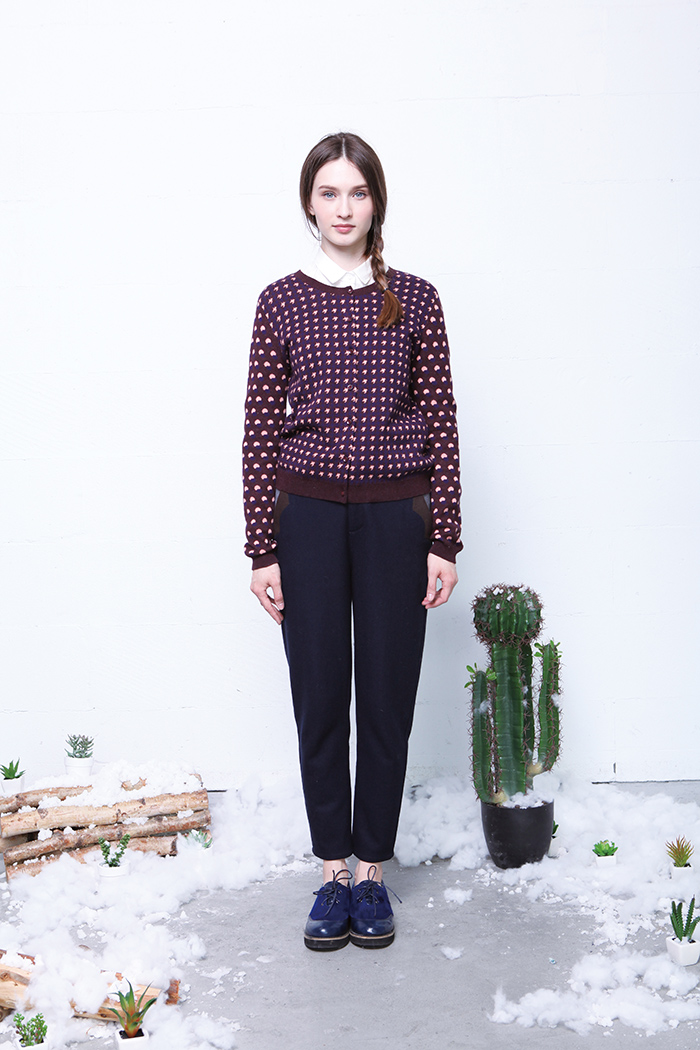 圓點(diǎn)千鳥(niǎo)格開(kāi)衫丨款式好穿易搭配,配以主題圖案提花,色彩明快優(yōu)雅。