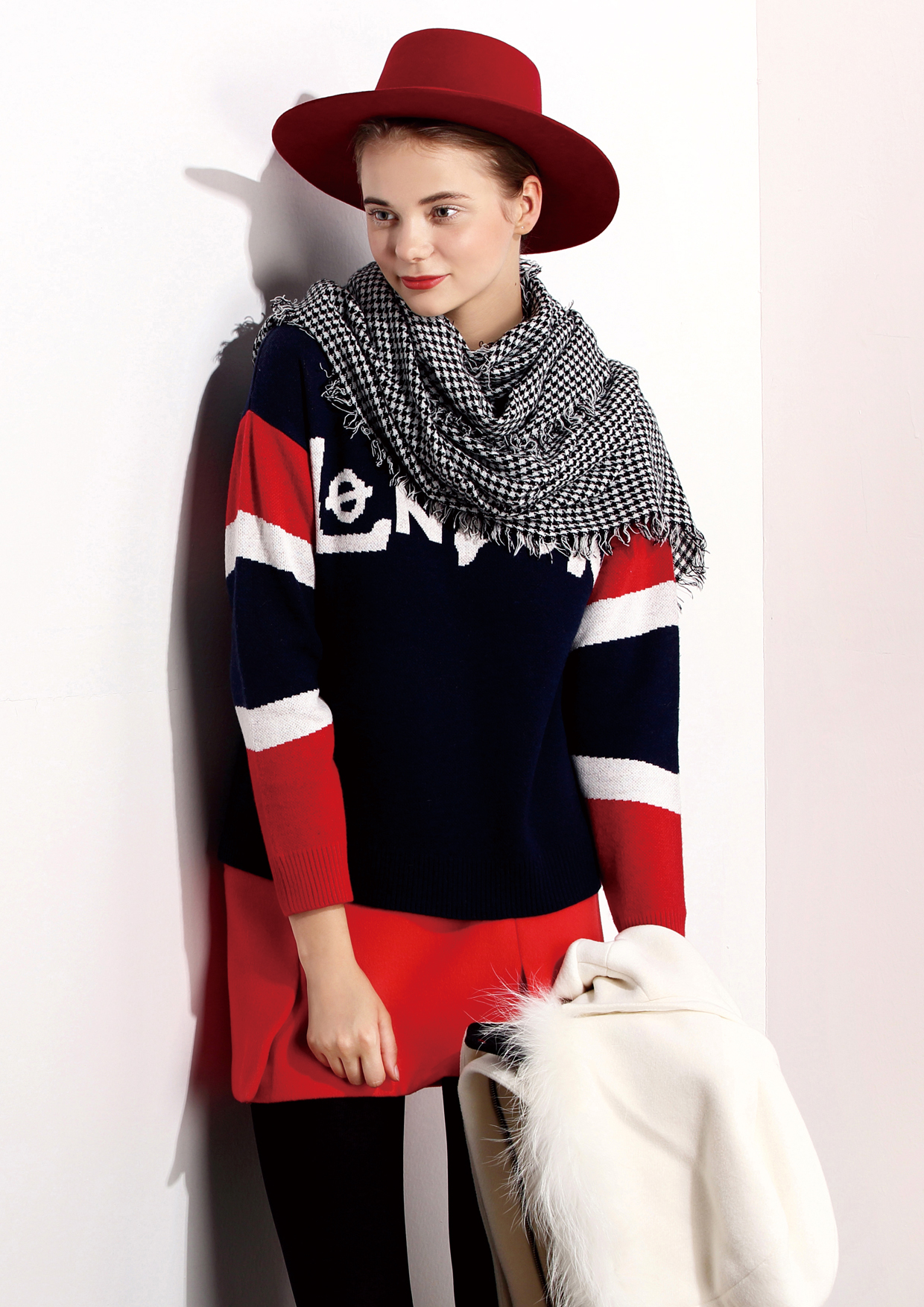 歌莉婭女裝2014冬裝新款,大紅大藍從來(lái)難以磨合,一個(gè)像秋天,一個(gè)像夏天。然而當它們遇上白色,這一切又顯得如此從容和自然。