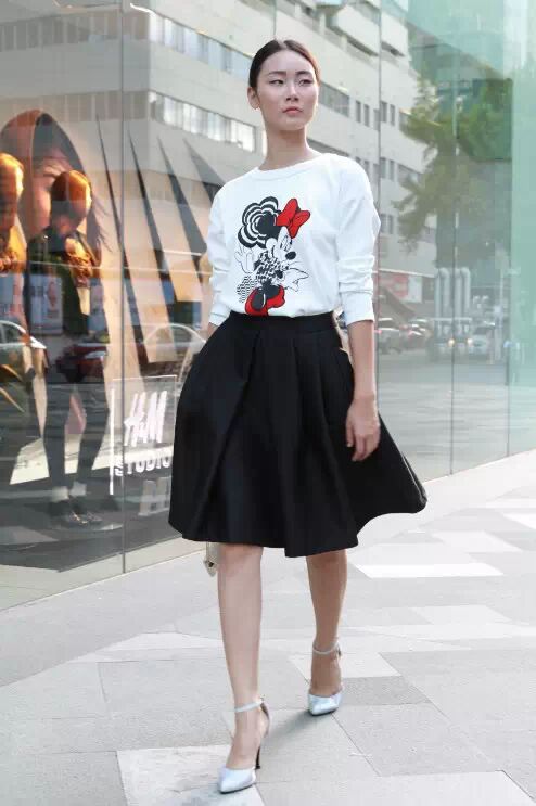 設計簡(jiǎn)潔、剪裁得體的米妮款衛衣廓形,正是時(shí)髦女生的必備單品。米妮卡通圖案與白色形成鮮明的對比,時(shí)髦亮眼,下身用一條傘形黑裙與之混搭,衛衣的運動(dòng)感與短裙的乖巧融為一體,經(jīng)典別致,時(shí)髦夠味兒。