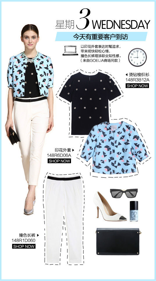 GOELIA歌莉婭2014秋裝新款女裝連衣裙、套裝流行搭配圖片。初入早秋,你準備好衣柜新寵應對工作日或是周末外出的裝扮了嗎?一周時(shí)髦搭配之選,最為優(yōu)雅的Fashion Icon.看看你最喜歡哪套Look?