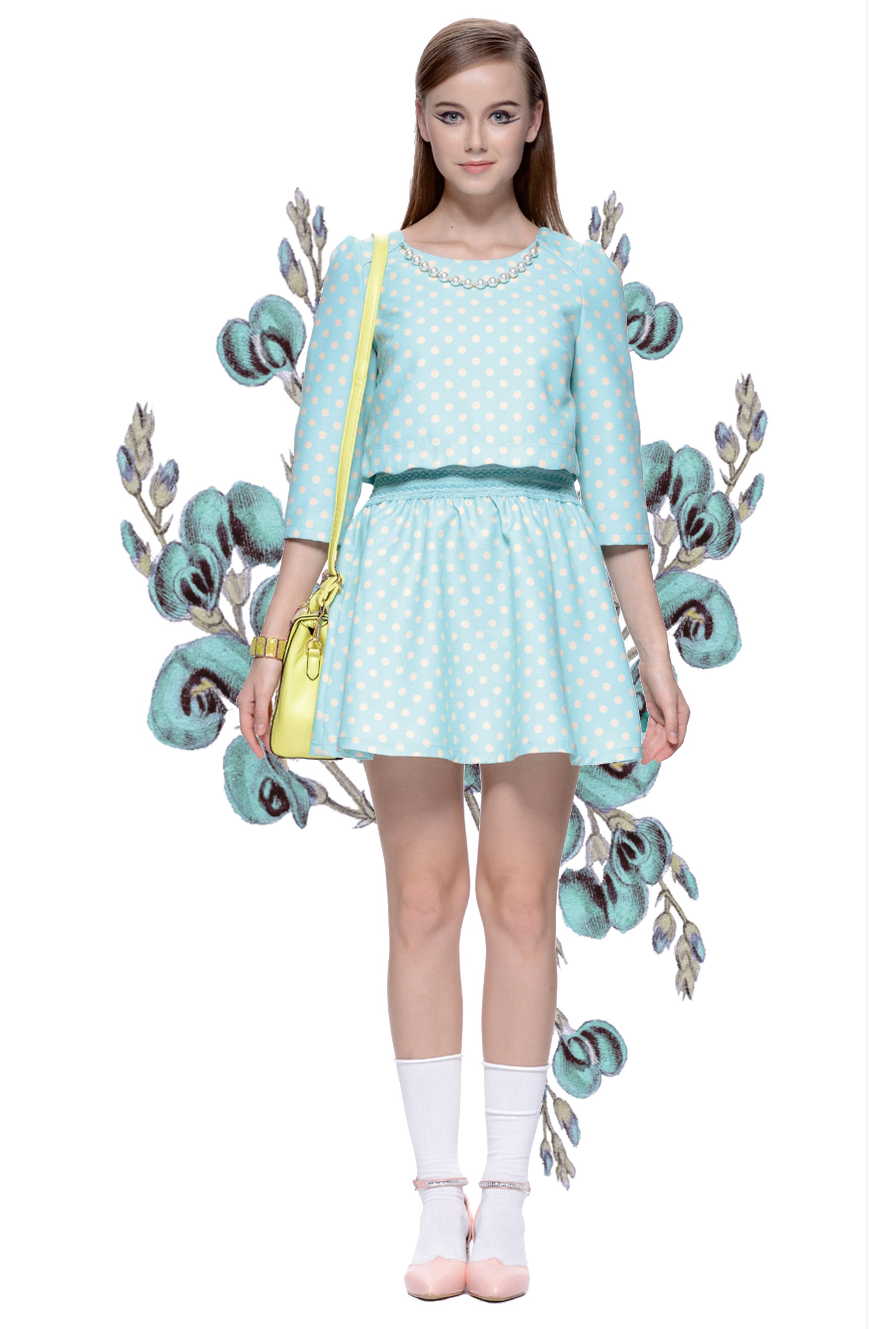 淡青,一如它的名字般純凈、清新,在淡青中加入波點(diǎn)以及蕾絲等凸顯女人味的輕元素,再通過(guò)高腰半裙或是修身剪裁的詮釋?zhuān)趶娬{完美比例的同時(shí),柔美、靈動(dòng)且浪漫的輕熟女氣質(zhì)展露無(wú)遺。